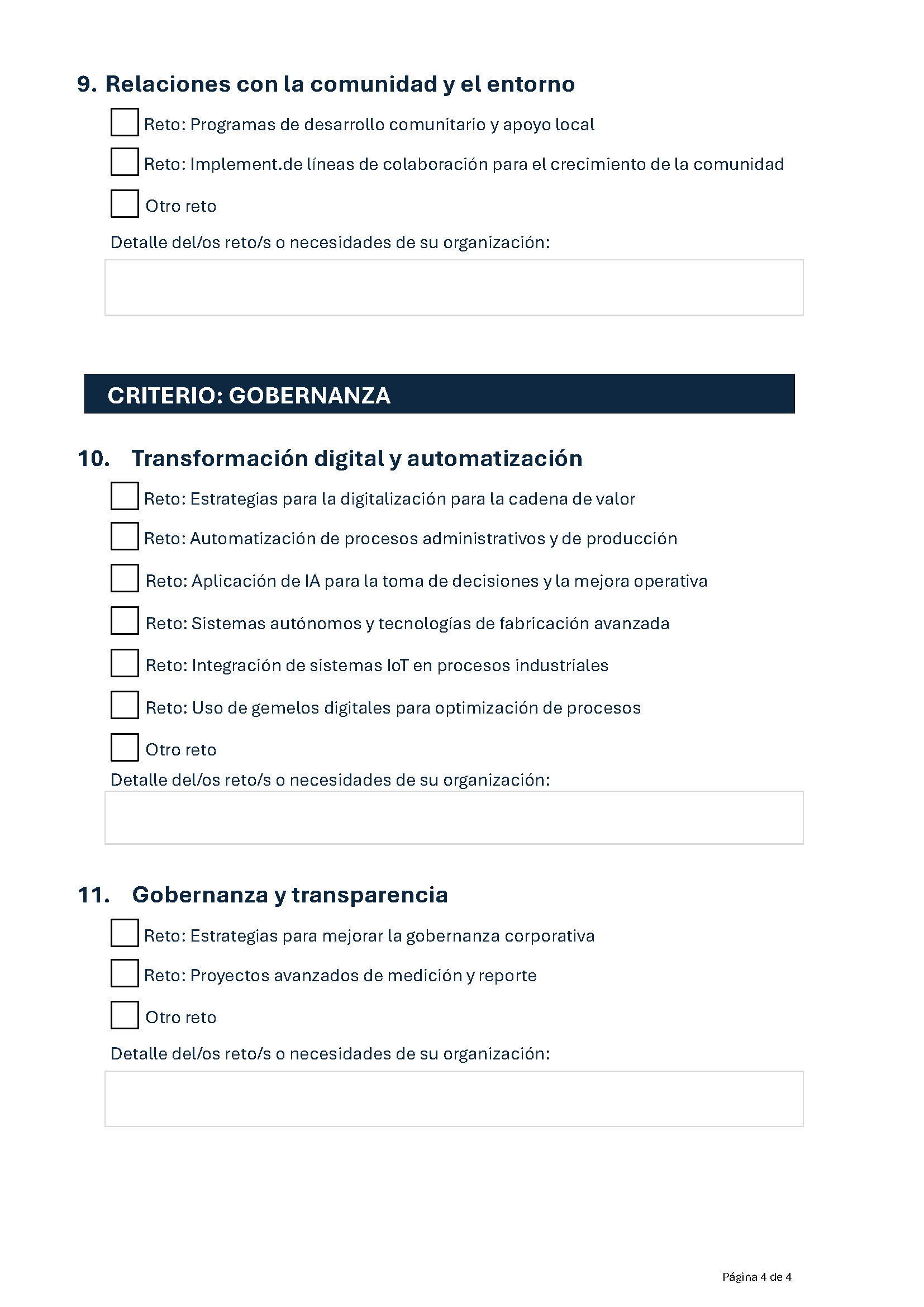 El criterio de Gobernanza se centró, principalmente en temas relacionados con la digitalización y la optimización de procesos. Los retos más votados incluyeron la automatización avanzada, la gestión de datos y la ciberseguridad. Estos resultados subrayan la relevancia de la transformación digital como motor para aumentar la competitividad empresarial y responder a las exigencias de un mercado globalizado.